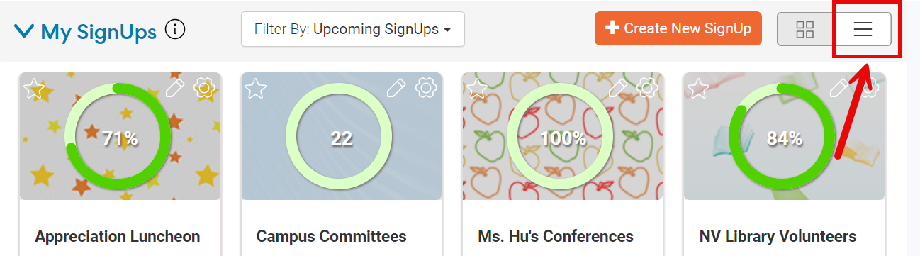 To access the Bulk Actions feature you must choose to be in the List View of My SignUps: