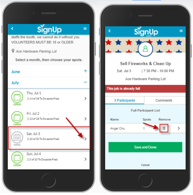 - To see the Spots you've signed up for, click My Spots (on a computer or tablet) or click the date that is marked Mine on a smartphone.